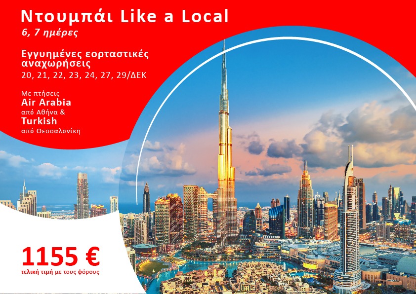 20, 21, 22, 23, 24, 27, 29/ΔΕΚ // 6, 7 ημέρες με πτήσεις Air Arabia από Αθήνα & Turkish από Θεσσαλονίκη